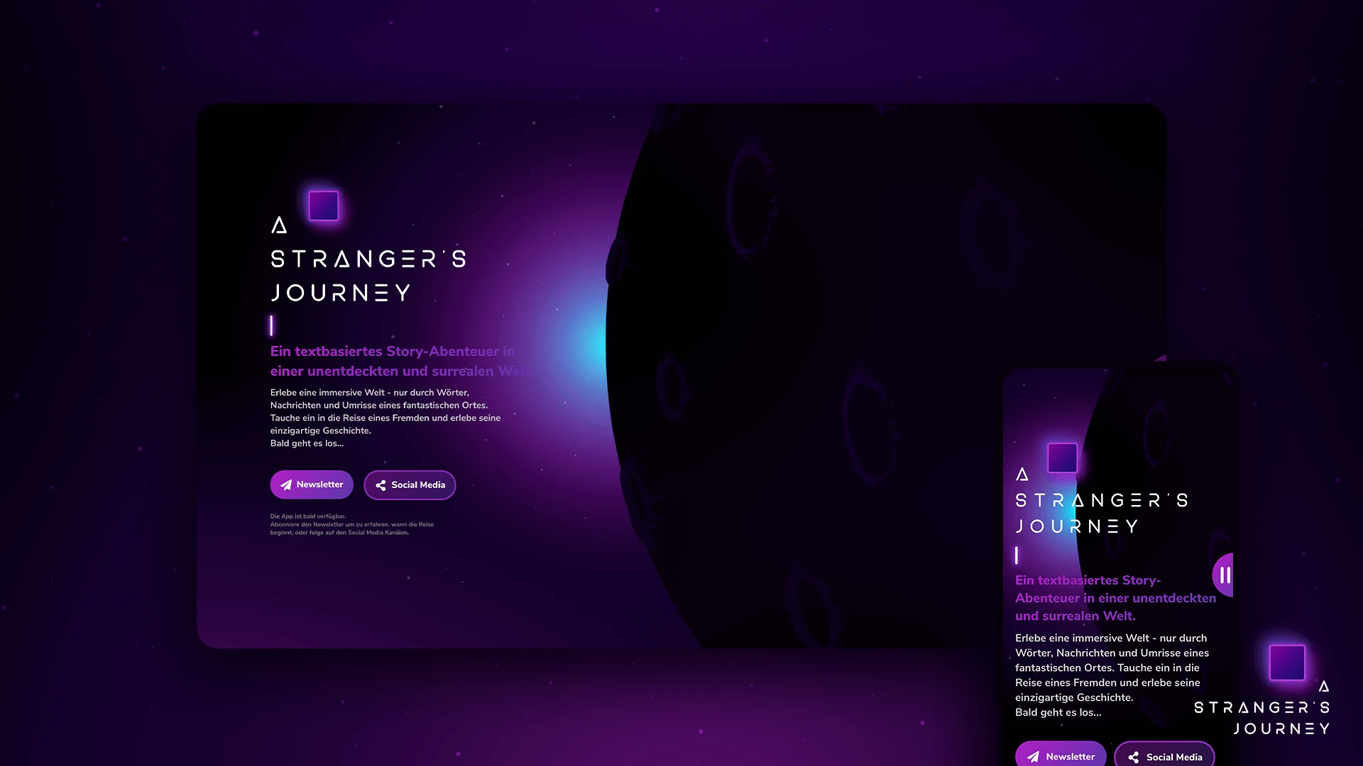 Das Design von A Stranger’s Journey ist eine Reise für sich – eine visuelle Ruhe, die Raum für Emotionen lässt. Dunkle Flächen treffen auf sanft leuchtende Akzente, Typografie und Bewegung verschmelzen zu einer Atmosphäre zwischen Traum und Realität.