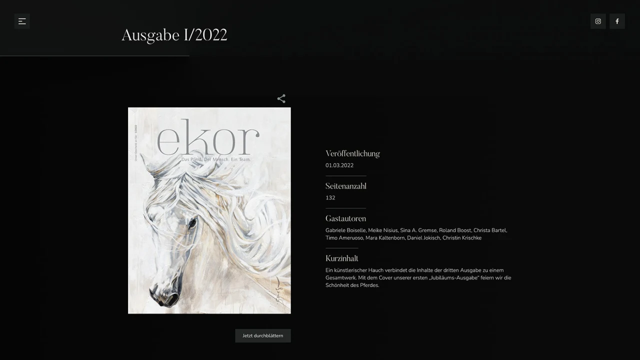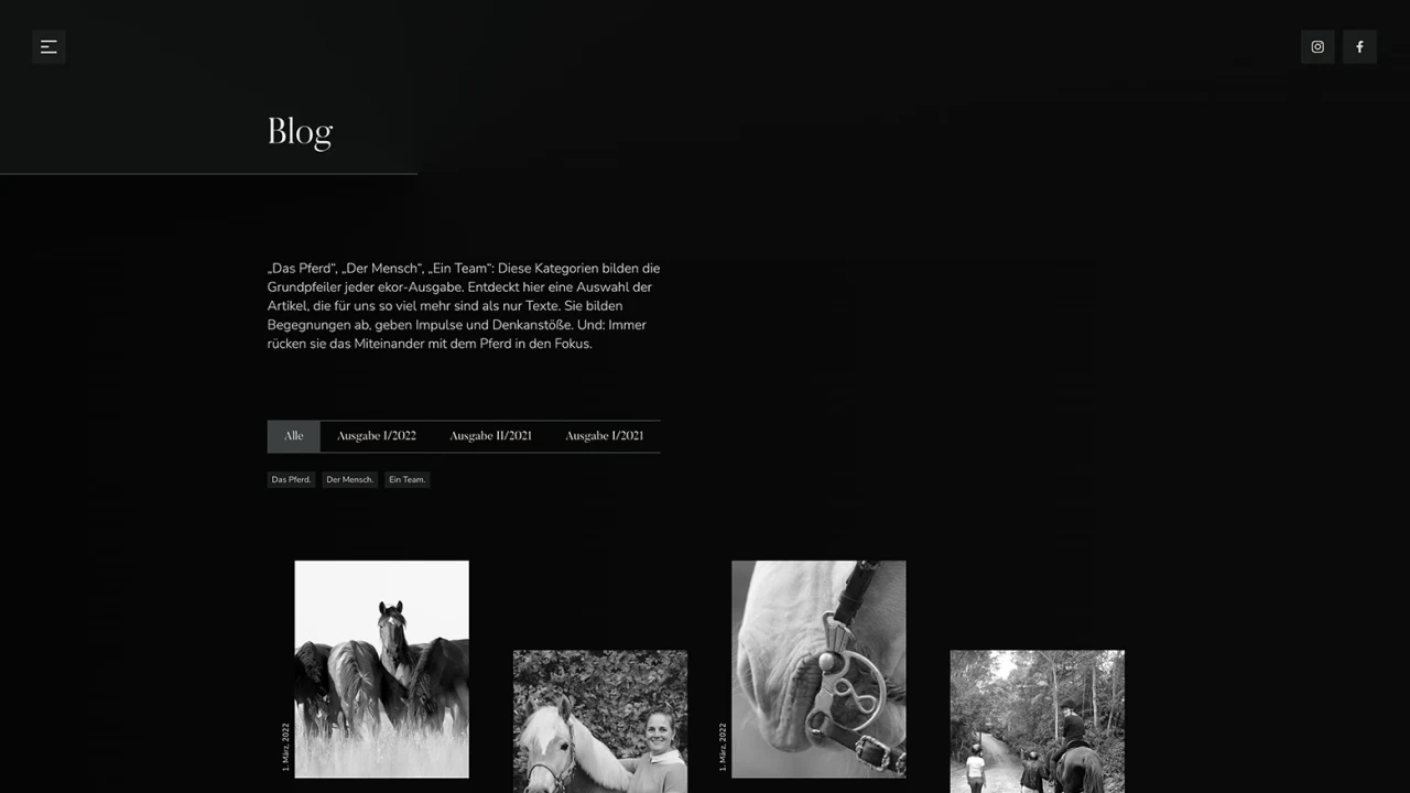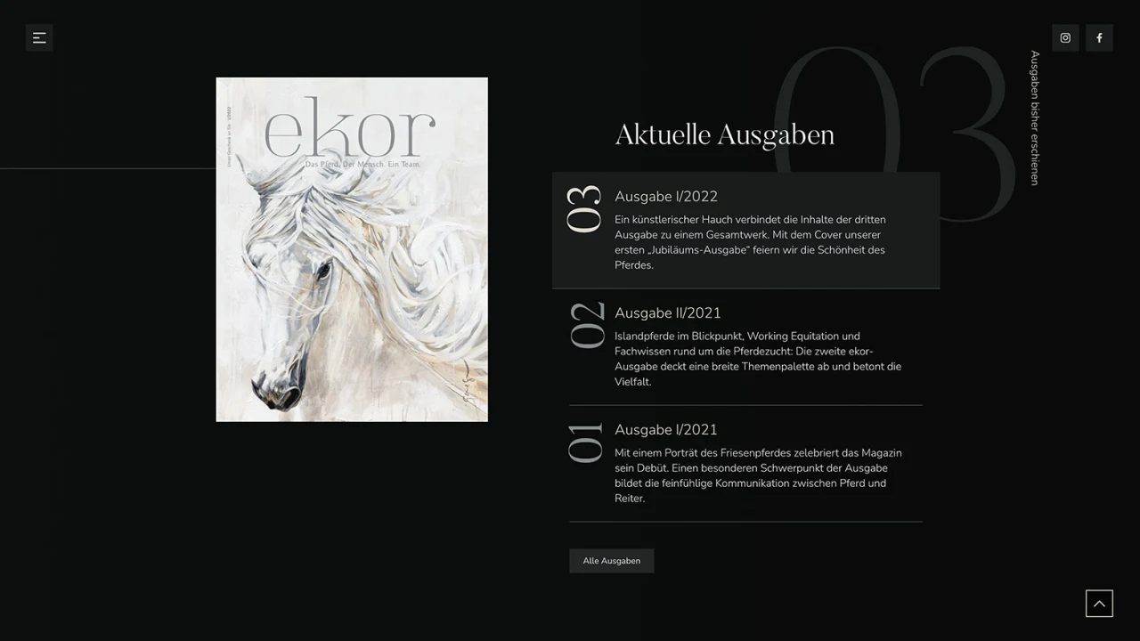 Das Ergebnis: eine Website, die das ekor Magazin als Marke stärkt, das redaktionelle Erlebnis digital verlängert und mit ihrem hochwertigen Look Maßstäbe in ihrer Nische setzt.